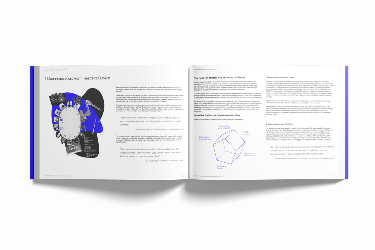 In this report, Vertex brings together perspectives from corporate leaders across Singapore to examine how open innovation is evolving in practice—where it delivers impact, where it breaks down, and what it takes to move from pilot to scale.